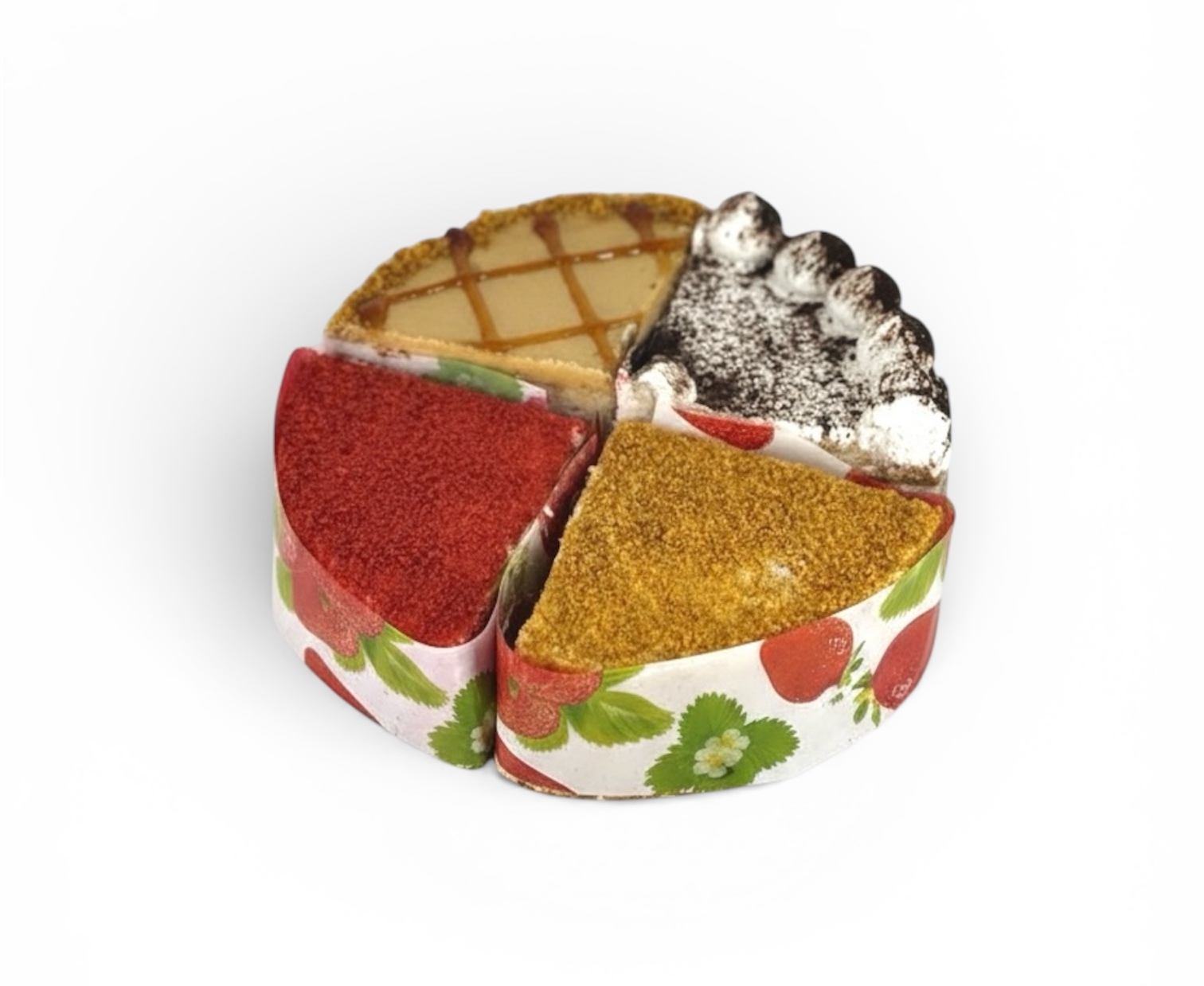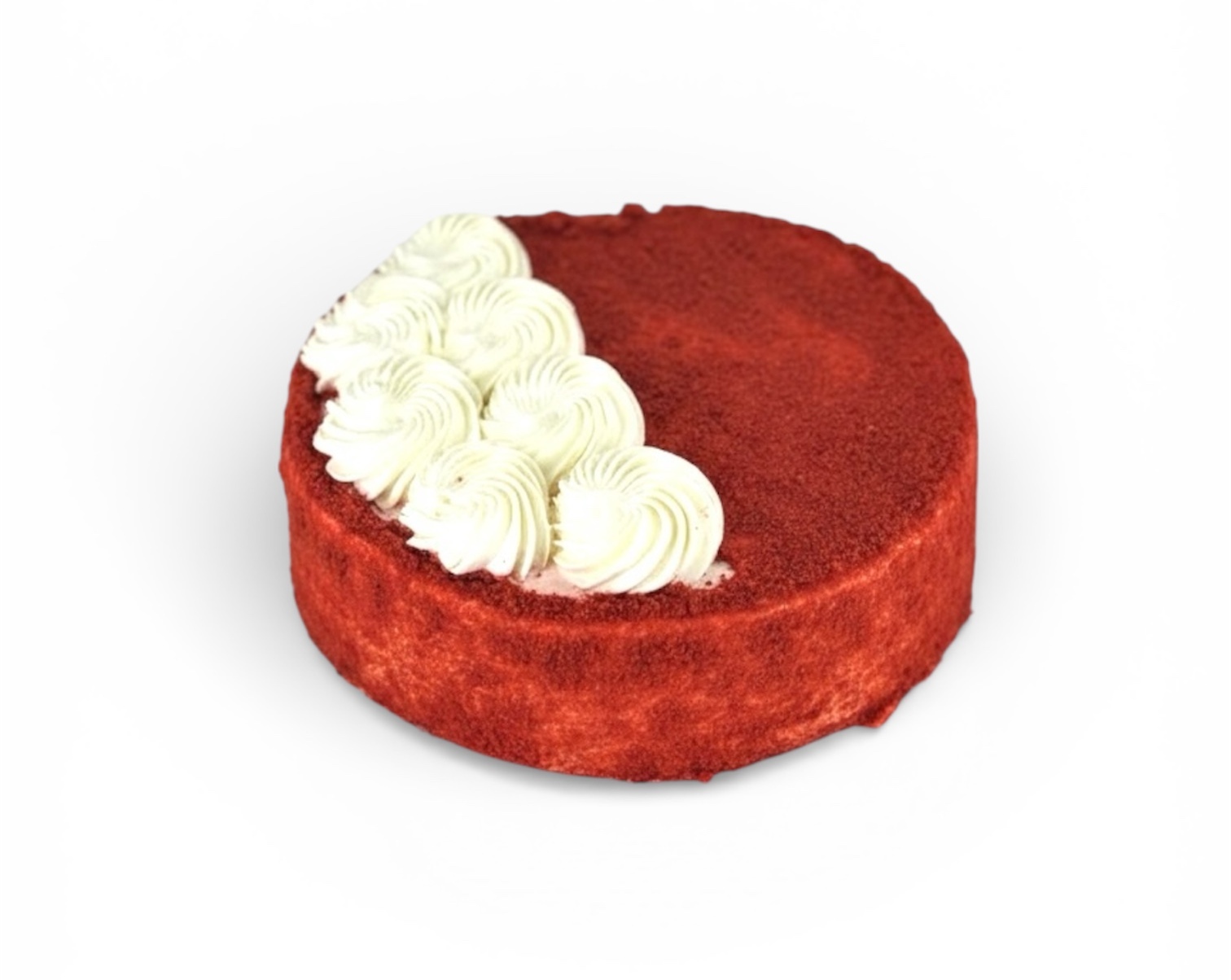Красный бархат с легкими нотками шоколада, прослойка из сырно - сливочного крема. Торт оформлен сырно - сливочным кремом и бисквитной крошкой. Вес - 900 гр