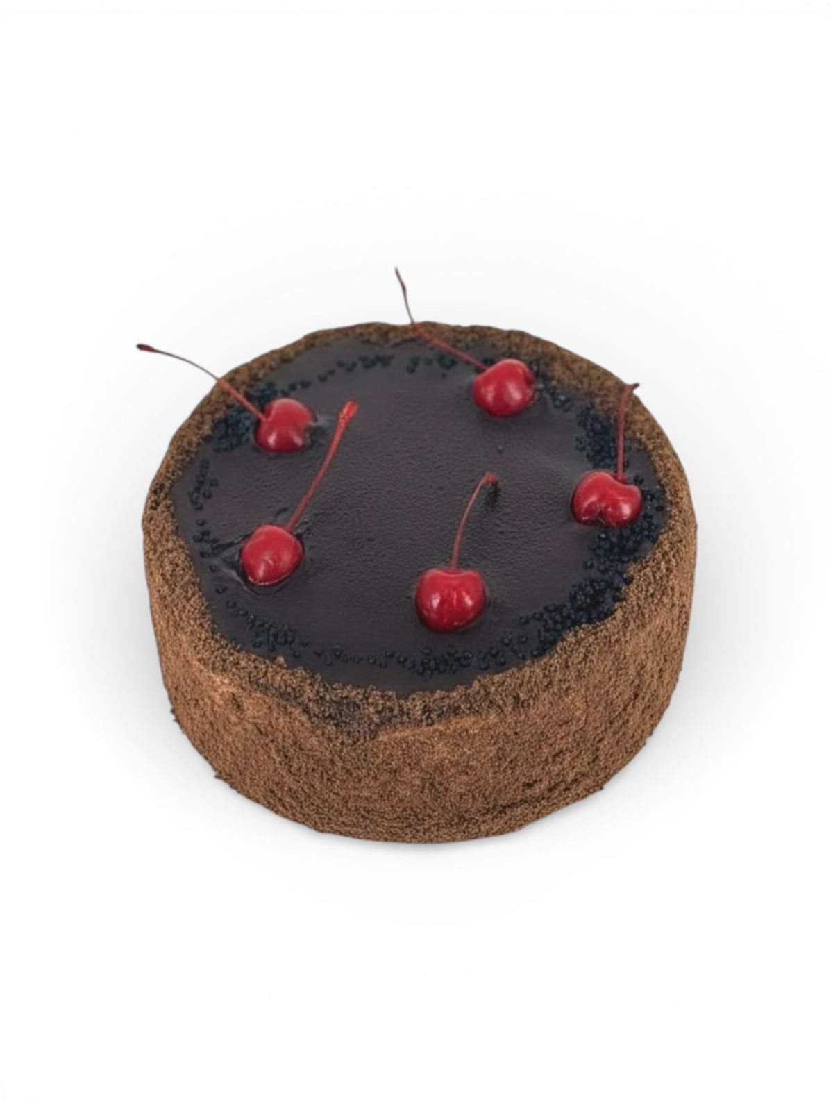 Шоколадный бисквит прослоен школадным кремо и фруктовым конфитюром с кусочками вишни. Оформлен шоколадной мягкой глазурью и мараскиновой вишней. Вес - 750 гр