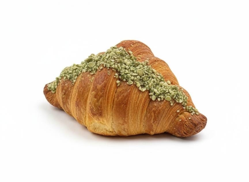 Слоеное дрожжевое тессто, крем фсташковый, молотые орехи. Вес - 110 гр